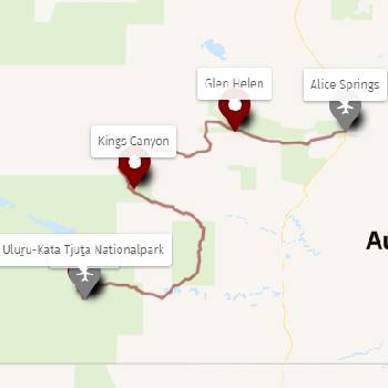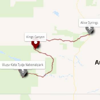 - Klassische Outback-Route: Alice Springs → Kings Canyon → Uluru → Kata Tjuta → zurück nach Alice Springs