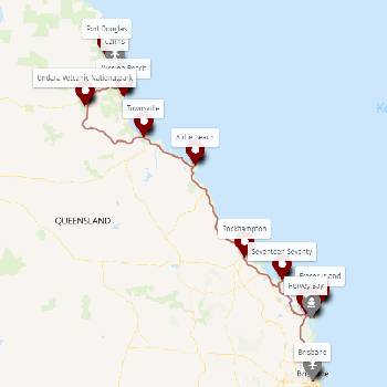Während der nächsten sechzehn Tage werden Sie einige typische Städte sowie einige der schönsten Strände erleben, für die Queensland so berühmt ist. Über den Bruce Highway geht es zunächst nach Norden und über eine landschaftlich reizvolle Küstenstraße nach Noosa. Von dort aus gelangen Sie wieder auf den Bruce Highway und weiter nach Hervey Bay.