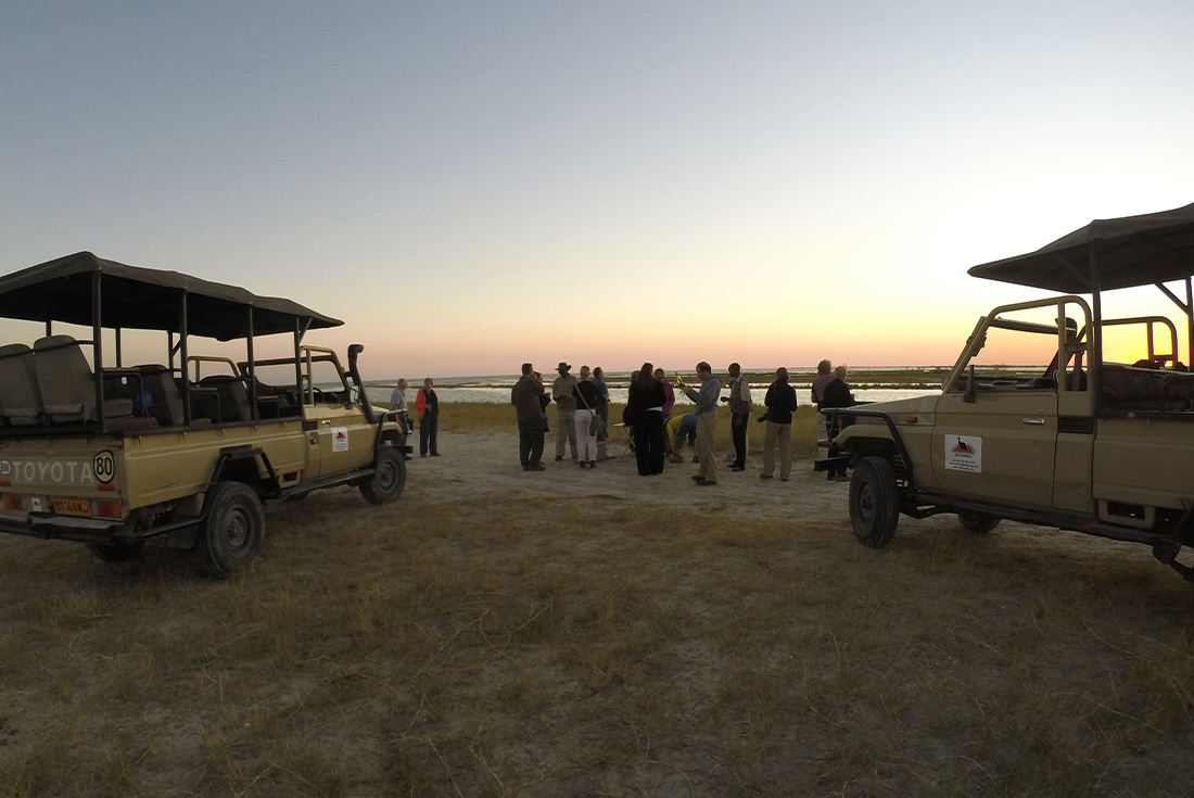 Im Nordosten Botswanas liegen mitten in der Savanne die größten zusammenhängenden Salzpfannen der Welt. Ein Teilstück der Nata Pfanne entdecken wir auf einer Exkursion.
