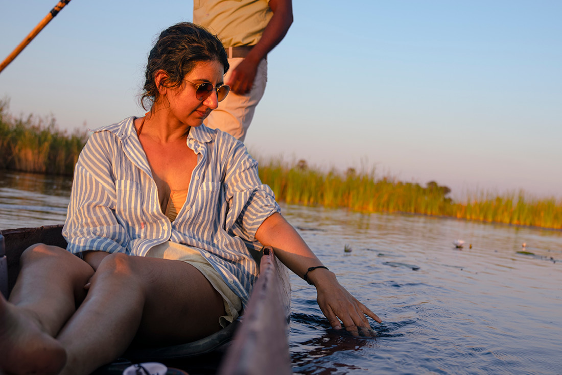 In einem typischen Mokoro, einem Einbaum-Kanu, navigieren uns die einheimischen Führer durch die fast unzugänglichen Wasserwege im größten Binnendelta der Welt. Sie übernachten in der Abgeschiedenheit der afrikanischen Wildnis unter dem Sternenhimmel.