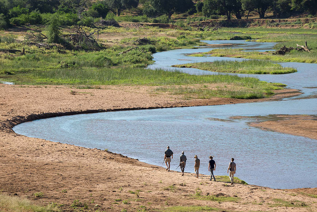 Der Tag beginnt mit einem Spaziergang am frühen Morgen. Wage Dich in das Flusstal des Limpopo und zu Crooks Corner, wo der Limpopo und der Luvuvhu zusammenfließen und die Grenze zwischen Mosambik, Simbabwe und Südafrika bilden. Der Name Crooks Corner stammt aus dem frühen 20. Jahrhundert, als Elfenbeinwilderer und verschiedene zwielichtige Typen in dieser weitläufigen Gegend Zuflucht vor dem Gesetz suchten. Falls der Wasserstand niedrig genug ist, kannst Du barfuß durch den Fluss gehen. Ist der Wasserstand höher, musst Du Dich am Flussufer auf härterem Terrain bewegen, um den Krokodilen auszuweichen. Anschließend kehrst Du zum Brunch ins Camp zurück und entspannst in der wundervollen Umgebung. Am Nachmittag erkundest Du die Gegend aus einer anderen Perspektive – mit einem Allradfahrzeug geht es auf Pirschfahrt.