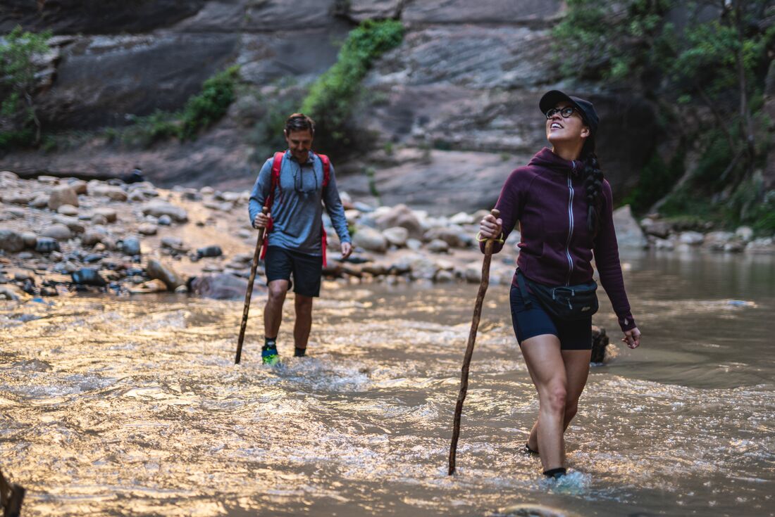 Klein, aber fein – das ist die Devise im Zion Nationalpark, wo sich zwischen hoch aufragenden Sandsteinfelsen und rötlich schimmernden Canyons der Virgin River eine Schlucht gebahnt hat.