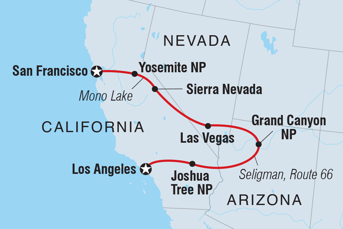Eine der spektakulärsten Naturkulissen Kaliforniens erwartet Sie im Yosemite Nationalpark mit seinen Granitfelsen wie El Capitan und Half Dome. Beliebt sind Wanderungen zu den Lower Nevada Falls und Bridalveil Falls oder Sie fahren mit dem Rad zum romantischen Mirror Lake.