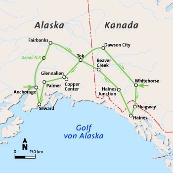 „The Great North“ – Alaska und Yukon erwarten Sie mit einer pulsierenden Mischung aus beeindruckender Natur, unglaublicher Tierwelt und zauberhaften Landstrichen. Lassen Sie Sich von Grizzlybären im Denali Nationalpark begeistern und tauchen Sie in die Goldgräbergeschichte von Dawson City, Whitehorse und Fairbanks ein.