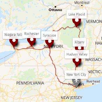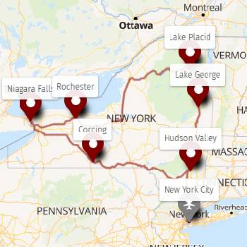 Diese Mietwagenrundreise führt sie quer durch den New York State. Während der Tour entdecken sie die besten Sehenswürdigkeiten wie z.B. Niagara Fälle und den Lake George, der “König der amerikanischen Seen”.