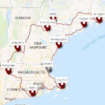Begleiten Sie uns auf einer unvergesslichen Entdeckungsreise durch Neuengland! Von der reichen Geschichte und pulsierenden Kultur von Boston bis zu den malerischen Küstenstädten, majestätischen Bergen und idyllischen Kleinstädten, die sich entlang der Route erstrecken, erwartet Sie eine Vielfalt an unvergesslichen Erlebnissen. Tauchen Sie ein in die charmante Atmosphäre von Kennebunkport, ...