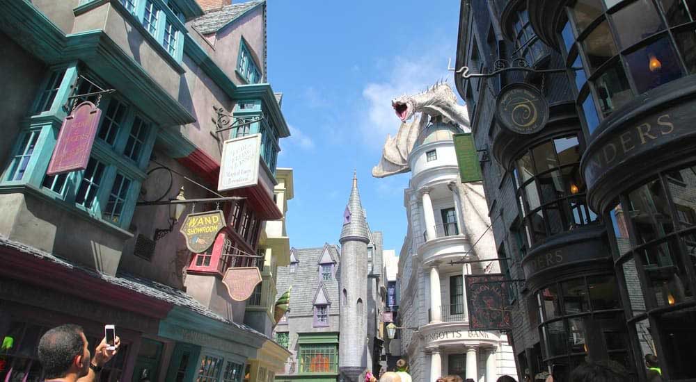 Zum Pflichtprogramm für alle Fans von Harry Potter gehört der Themenpark Universal Studios Florida im Universal Orlando Resort. In der Winkelgasse der zauberhaften Welt von Harry Potter erwarten Sie Attraktionen wie eine optionale Themenfahrt durch Gringotts Bank oder Ollivanders Wand Shop mit Zauberstäben für angehende Zauberkünstler. Vom Gleis 9 3/4 am Bahnhof King’s Cross geht es mit dem Hogwarts-Express durch eine idyllische englische Landschaft nach Hogsmeade im benachbarten Themenpark Universal Islands of Adventure. Das Zauberdorf am Fuß von Schloss Hogwarts begeistert mit zahlreichen charmanten Läden und Kneipen. Nach einem optionalen Rundgang durch die Korridore und Klassenzimmer der Hogwarts-Schule für Hexerei und Zauberei können Sie sich dann bei Hagrid’s Magical Creatures Motorbike Adventure tief in den Verbotenen Wald wagen. Letzter Höhepunkt am Abend ist die spektakuläre Lichtshow Dark Arts at Hogwarts Castle mit Lord Voldemort und den Dementoren.